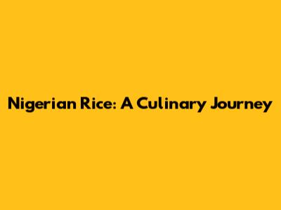 Nigerian Rice: A Culinary Journey