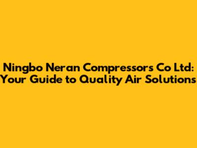Ningbo Neran Compressors: Your Guide To Quality Air Solutions