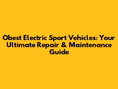 Obest Electric Sport Vehicles: Repair & Maintenance Guide
