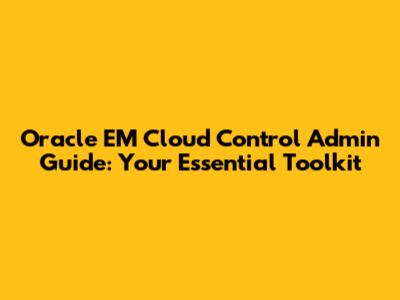 Oracle EM Cloud Control Admin Guide
