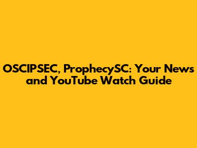 OSCIPSEC, ProphecySC: News & YouTube Watch Guide