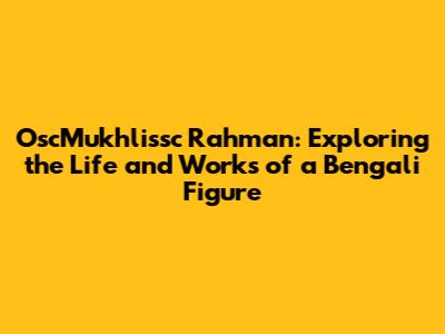 OscMukhlissc Rahman: Exploring A Bengali Luminary