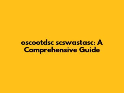 Oscootdsc Scswastasc: A Comprehensive Guide