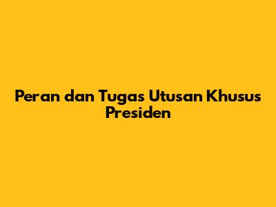 Peran Dan Tugas Utusan Khusus Presiden
