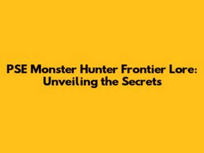 PSE Monster Hunter Frontier Lore: Unveiling The Secrets