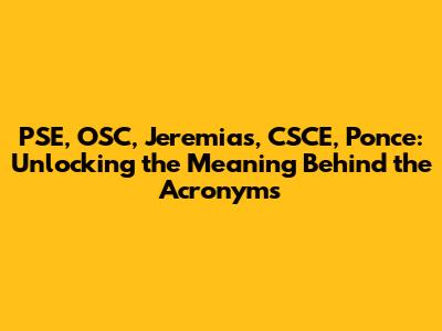 Alright, guys, ever stumbled upon a bunch of acronyms and felt totally lost? Today, we're diving deep into the world of PSE, OSC, Jeremias, CSCE, and Ponce. Let's break down each one, explore their significance, and understand how they connect. Understanding these terms can be super helpful, especially if you're involved in specific industries or fields where they pop up frequently. This article aims to provide a comprehensive overview, ensuring you're no longer scratching your head when these abbreviations appear. We'll cover everything from their basic definitions to their broader implications, giving you a solid foundation of knowledge. So, buckle up and get ready to decode the mysteries behind these acronyms! This will not only enhance your understanding but also enable you to engage more confidently in related discussions. Let's get started and unravel the layers of meaning behind PSE, OSC, Jeremias, CSCE, and Ponce, making them crystal clear for everyone. By the end of this, you'll be the go-to person for explaining these terms to your friends and colleagues!