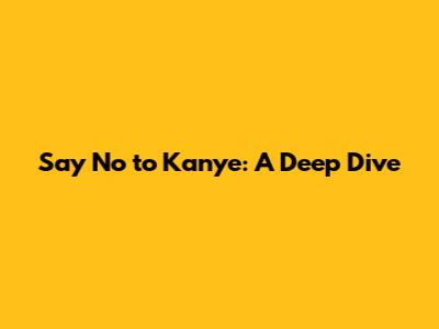 Say No To Kanye: A Deep Dive