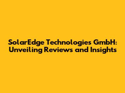 SolarEdge Technologies GmbH: Reviews & Insights
