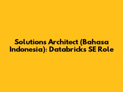 Solutions Architect (Bahasa Indonesia): Databricks SE Role