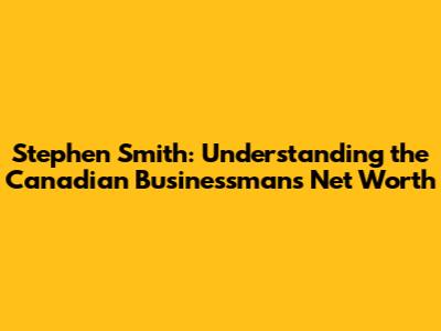 Stephen Smith: Understanding The Canadian Businessman's Net Worth