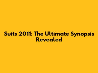 Suits 2011: The Ultimate Synopsis Revealed