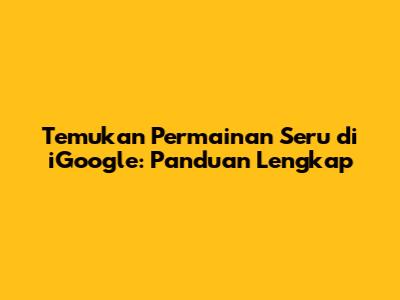 Temukan Permainan Seru Di IGoogle: Panduan Lengkap