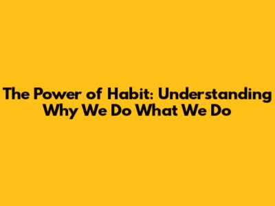 The Power Of Habit: Understanding Why We Do What We Do