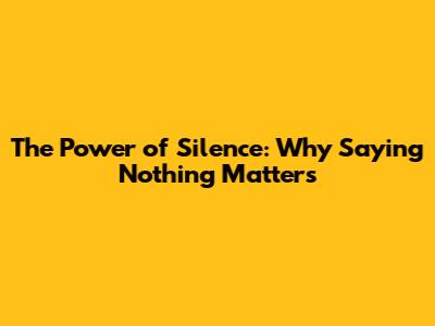 The Power Of Silence: Why Saying Nothing Matters