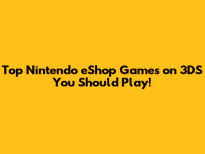 Top Nintendo EShop Games On 3DS You Should Play!