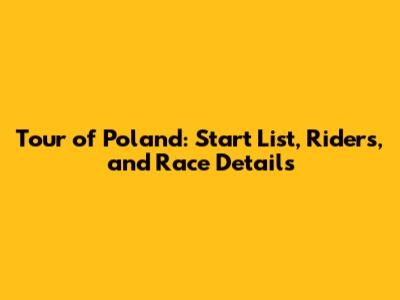 Tour Of Poland: Start List, Riders, And Race Details