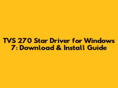 TVS 270 Star Driver For Windows 7: Download & Install Guide