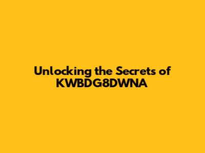 Unlock The Secrets Of KWBDG8DWNA