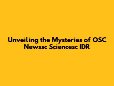 Unveiling the Mysteries of OSC Newssc Sciencesc IDR