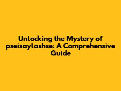 Unlocking The Mystery Of 'pseisaylashse': A Comprehensive Guide