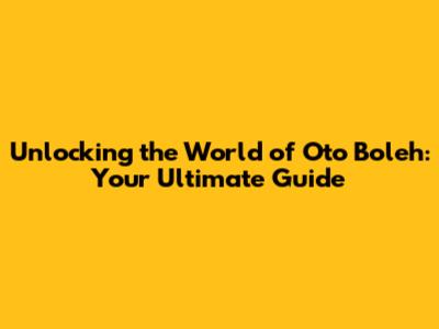 Unlocking The World Of Oto Boleh: Your Ultimate Guide