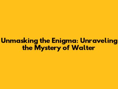 Unmasking The Enigma: Unraveling The Mystery Of Walter