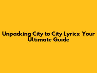 Unpacking 'City To City' Lyrics: Your Ultimate Guide