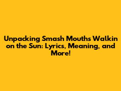 Hey music lovers! Ever found yourself tapping your foot and singing along to a song without really knowing what it's about? Well, today, we're diving deep into Smash Mouth's iconic hit, "Walkin' on the Sun." This song, released in 1997, became an instant classic, blasting through the airwaves and becoming a staple on the radio, at sporting events, and in movies. But, beyond the catchy beat and the memorable chorus, lies a song packed with interesting lyrics and a unique perspective. So, buckle up, because we're about to dissect the meaning, the history, and all the juicy details behind this summer anthem. Let's get started, shall we?