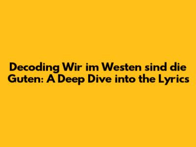 Unpacking The Layers: 'Wir Im Westen Sind Die Guten' Lyrics