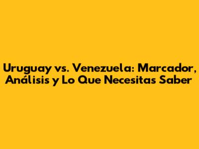 Uruguay Vs. Venezuela: Marcador, Análisis Y Lo Que Necesitas Saber