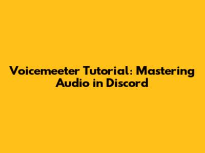 Voicemeeter Tutorial: Mastering Audio In Discord