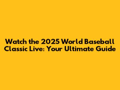 Watch The 2025 World Baseball Classic Live: Your Ultimate Guide