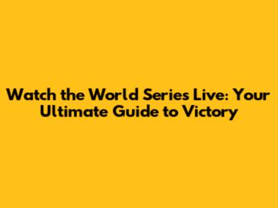 Watch The World Series Live: Your Guide To Victory