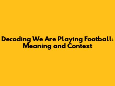 What Does 'We Are Playing Football' Really Mean?