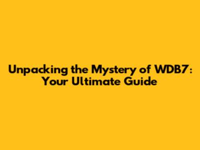 Unpacking the Mystery of WDB7: Your Ultimate Guide