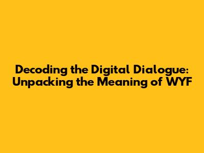 WYF Meaning: Decoding The Texting Acronym